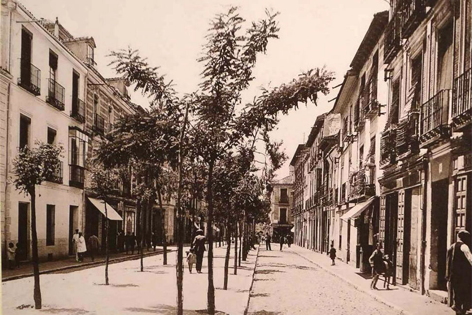 La Calle Libreros de Alcalá de Henares hacia 1920, cuando contaba con su histórico bulevar. Fuente: Archivo Municipal de Alcalá de Henares / Wikipedia.